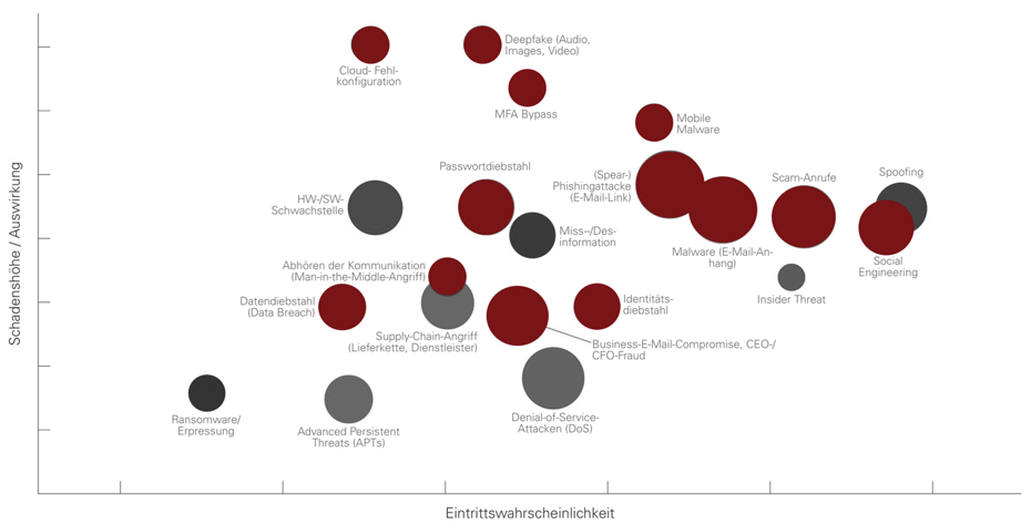 Eintrittswahrscheinlichkeit und Auswirkungen von Cyberangriffen in den letzten 12 Monaten (Quelle: KPMG, 2025)