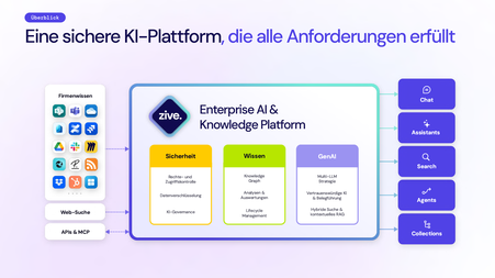 Viele Unternehmen starten KI-Projekte mit großen Erwartungen und sind am Ende enttäuscht. Häufig liegt das nicht an der Technologie selbst, sondern an fehlender Integration, mangelnder Governance und der falschen Herangehensweise. Einzelne Tools, die nicht in bestehende Systeme eingebunden sind, führen zu Schatten-IT und unkontrollierten Datenflüssen. Zudem setzen viele Lösungen auf ein einziges Modell, das nicht alle Anforderungen abdecken kann. Eine KI-Plattform wie Zive löst diese Probleme grundlegend. Sie kombiniert mehrere KI-Modelle, sodass für jede Aufgabe das passende Modell genutzt wird: vom schnellen Text-Check bis zur komplexen Analyse. Gleichzeitig sorgt Zive für nahtlose Integration in bestehende Systeme, bietet über 100 Schnittstellen und ist auf allen Kanälen verfügbar: Web, Mobile, Desktop und MS Teams. Governance und Sicherheit sind von Anfang an integriert: DSGVO-konform, ISO-zertifiziert und mit Datenhaltung in der EU.